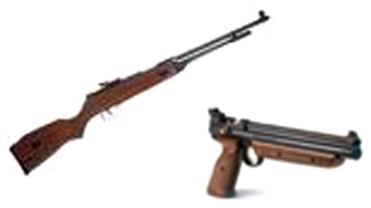 Rifles y pistolas que funcionan con aire comprimido en recipientes a presión (sin gas) o por mecanismo de resorte y pistón. |