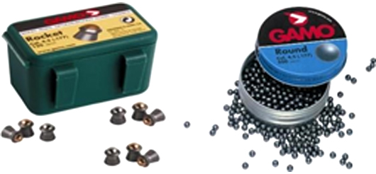 Por lo regular son diábolos (copitas) y balines de plomo o cobre, o una combinación de metales. También de plástico con relleno de pintura (gotcha). |