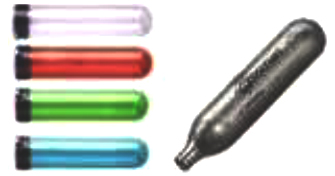Cuentan con un alojamiento para un tanque de gas comprimido (no de aire) de cualquier tamaño. El gas puede ser CO2 (bióxido de carbono o gas carbónico), nitrógeno, o cualquier otro utilizado en estas actividades. |